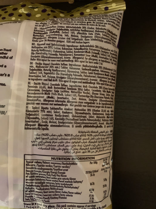 WALKERS DOUBLE DIPPED CHOCOLATE TOFFEES 135G