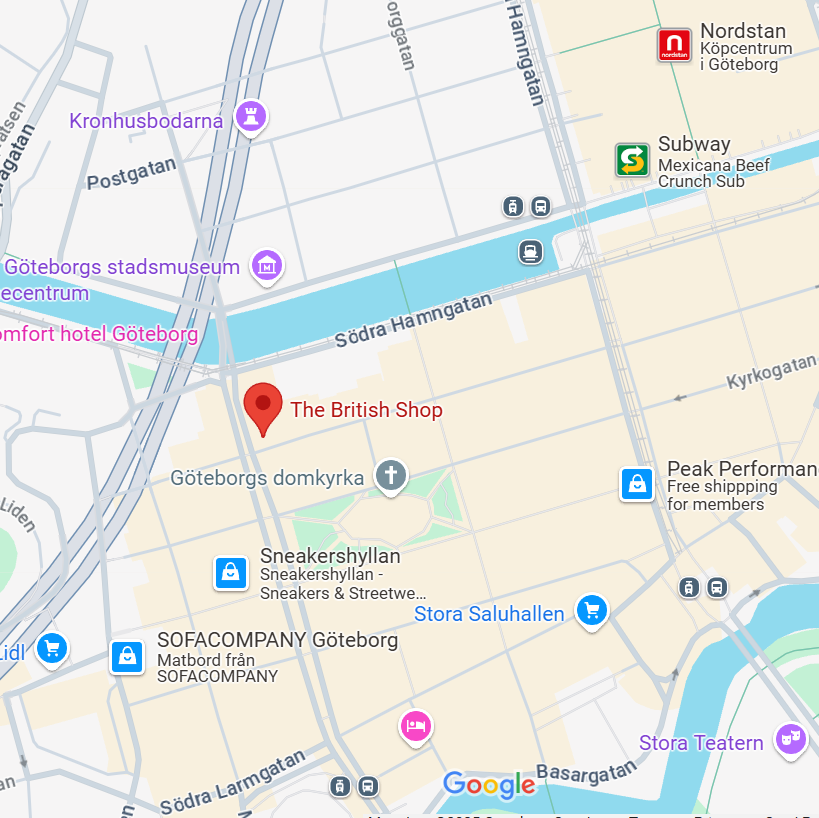 Our shop is located inside Antikhallarna shopping centre, with the entrance on the corner of Västra Hamngatan and Drottningatan.